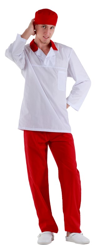 Куртка работника кухни мужская белая с красным воротником [00100]