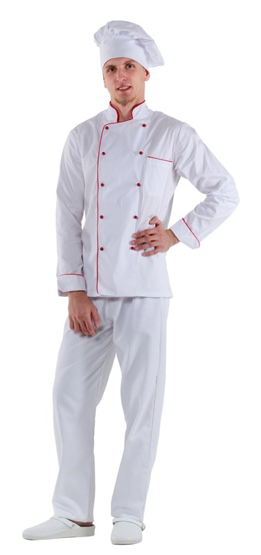 Куртка шеф-повара белая мужская с манжетом (отделка красный кант) [00002]