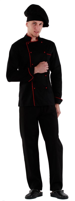 Куртка шеф-повара черная мужская с манжетом (отделка красный кант) [00002]