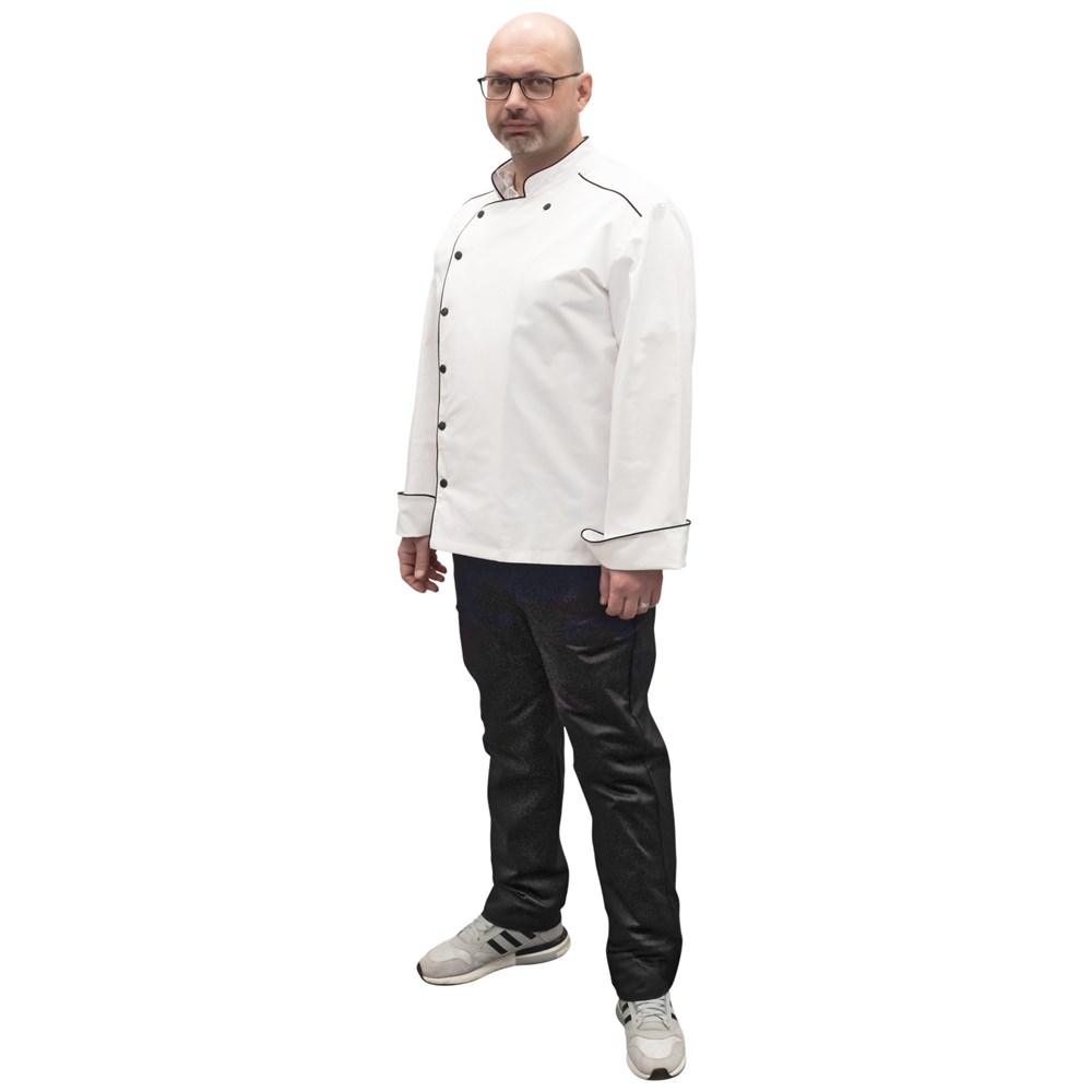 Куртка шеф-повара мужская белая на кнопках рукав длинный с отворотом черный кант [000024 р.50] ЛФ