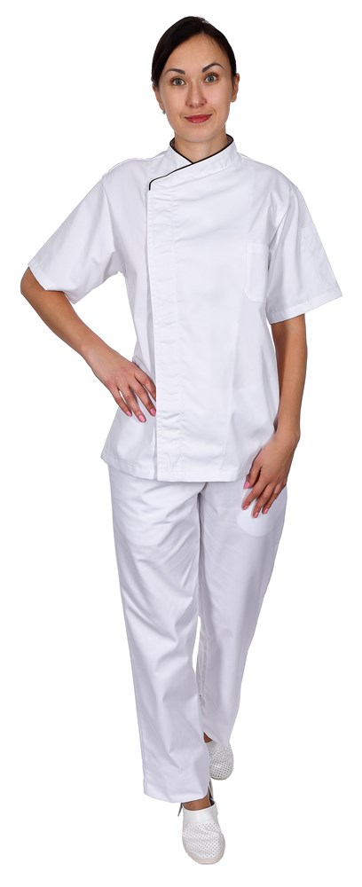 Куртка шеф-повара премиум белая рукав короткий (отделка черный кант) [00014]