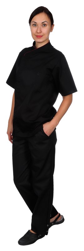 Куртка шеф-повара премиум черная рукав короткий (отделка бордовый кант) [00014]