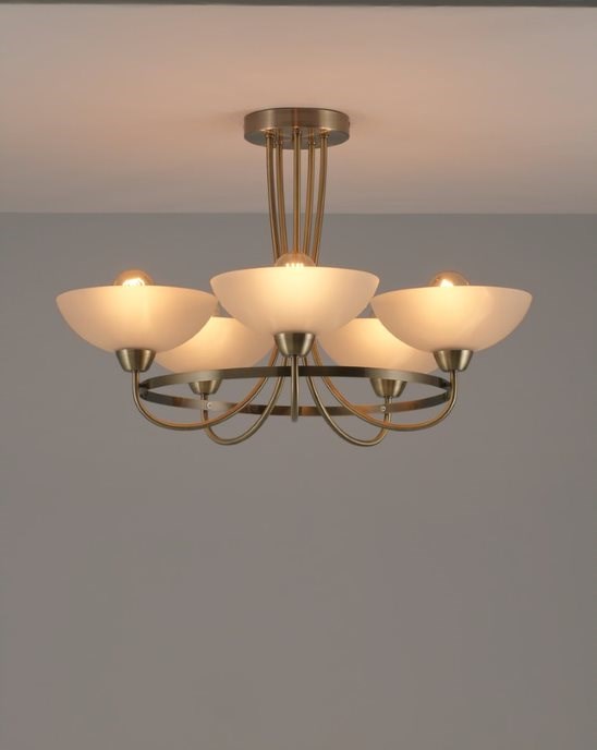 Габарит изделия : 550x600 мм\; Выключатель/Пульт : для скрытой проводки\; Лампы в комплекте : Нет\; Материал арматуры : металл\; Материал плафонов : стекло\; Наличие диммера : нет\; Наличие пульта д/у : нет\; Направление плафонов : вверх\; Напряжение : 220-265 В\; Степень защиты IP : 24\; Тип цоколя : E14\; Цвет арматуры : античная латунь\; Цвет декора : античная латунь\; Цвет плафонов : белый\;