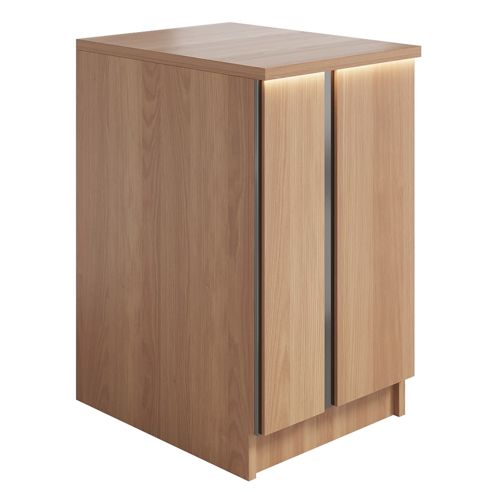 Габариты (ШхГхВ) : 504х654х865 мм \; Материал корпуса : ЛДСП 16 мм., кромка ПВХ 2 и 0,4 мм. \; Материал фасада : ЛДСП 16 мм., кромка ПВХ 0,4 мм. \; Столешница рабочая и гостевая : ЛДСП 25 мм., кромка ПВХ 2 мм \; Подсветка : LED (под столешницей - дополнительная опция)\;