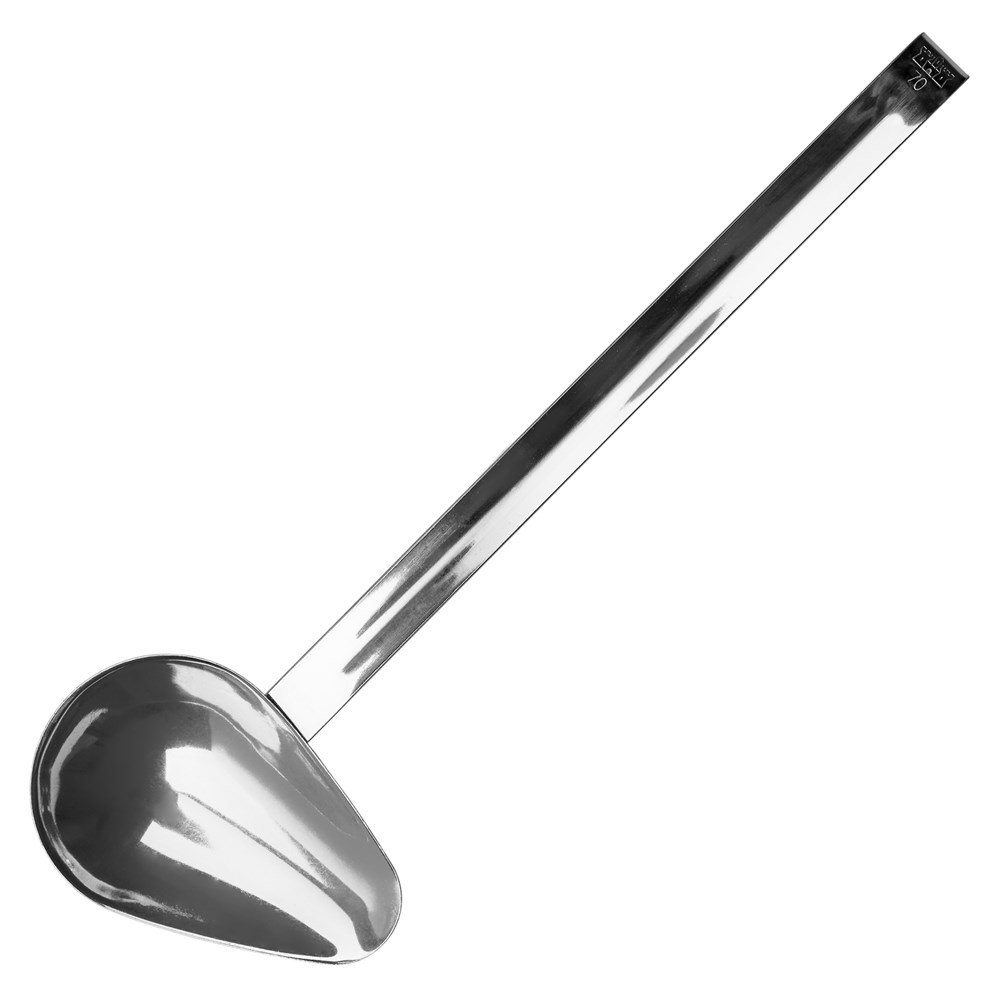 Объем : 70 мл\; Длина : 275 мм\; Размер рабочей части : 105х65 мм\; Материал : нержавеющая сталь\; Толщина : 1 мм\;