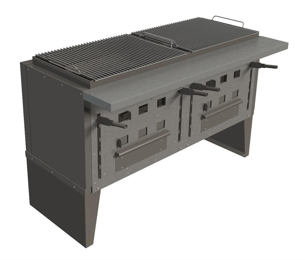 Питание: твердое топливо\; Количество зон нагрева: 2\; Установка: Напольная\; Материал жарочной поверхности: Сталь\; Габаритные размеры, мм: 1415х768х950\; Структура поверхности: Решетчатая\;