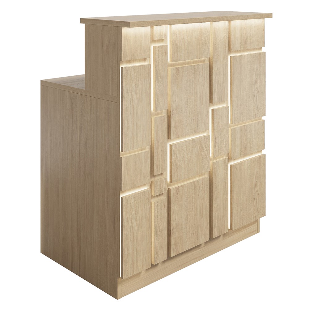 Габариты (ШхГхВ) : 1004х686х1190 мм \; Материал корпуса : ЛДСП 16 мм., кромка ПВХ 2 и 0,4 мм. \; Материал фасада : ЛДСП 16 мм., кромка ПВХ 0,4 мм \; Столешница рабочая и гостевая : ЛДСП 25 мм., кромка ПВХ 2 мм \; Подсветка : LED (под столешницей - дополнительная опция, в фасаде входит в стоимость)\;