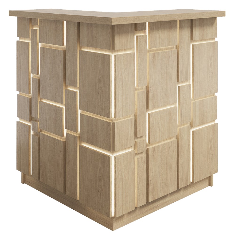 Габариты (ШхГхВ) : 1052х1052х1190 мм \; Материал корпуса : ЛДСП 16 мм., кромка ПВХ 2 и 0,4 мм. \; Материал фасада : ЛДСП 16 мм., кромка ПВХ 0,4 мм \; Столешница рабочая и гостевая : ЛДСП 25 мм., кромка ПВХ 2 мм \; Подсветка : LED (под столешницей - дополнительная опция, в фасаде входит в стоимость)\;