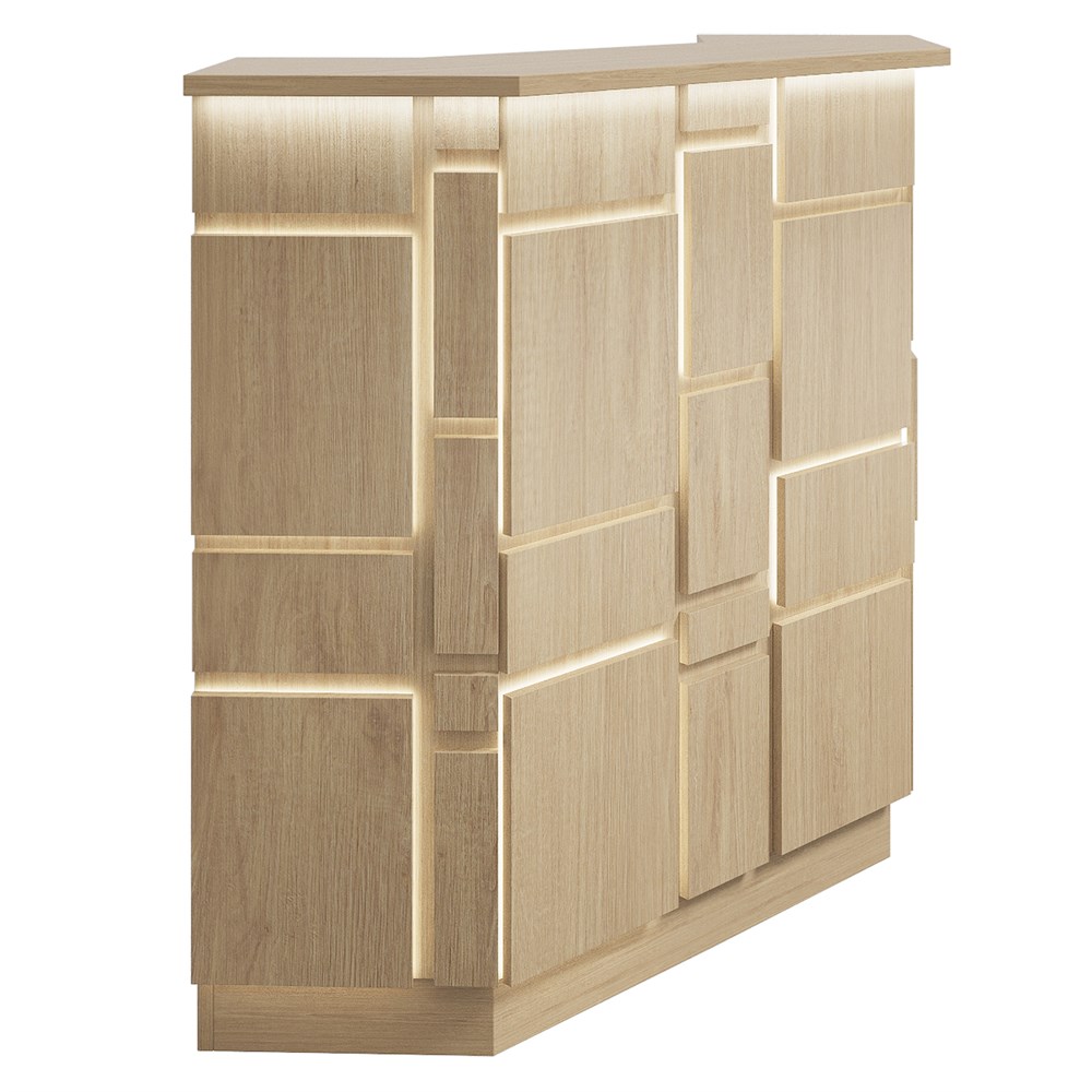 Габариты (ШхГхВ) : 1000х1000х1190 мм \; Подсветка : LED (под столешницей - дополнительная опция, в фасаде входит в стоимость)\; Материал корпуса : ЛДСП 16 мм., кромка ПВХ 2 и 0,4 мм. \; Материал фасада : ЛДСП 16 мм., кромка ПВХ 0,4 мм \; Столешница рабочая и гостевая : ЛДСП 25 мм., кромка ПВХ 2 мм \; Подсветка : LED (под столешницей - дополнительная опция, в фасаде входит в стоимость)\;