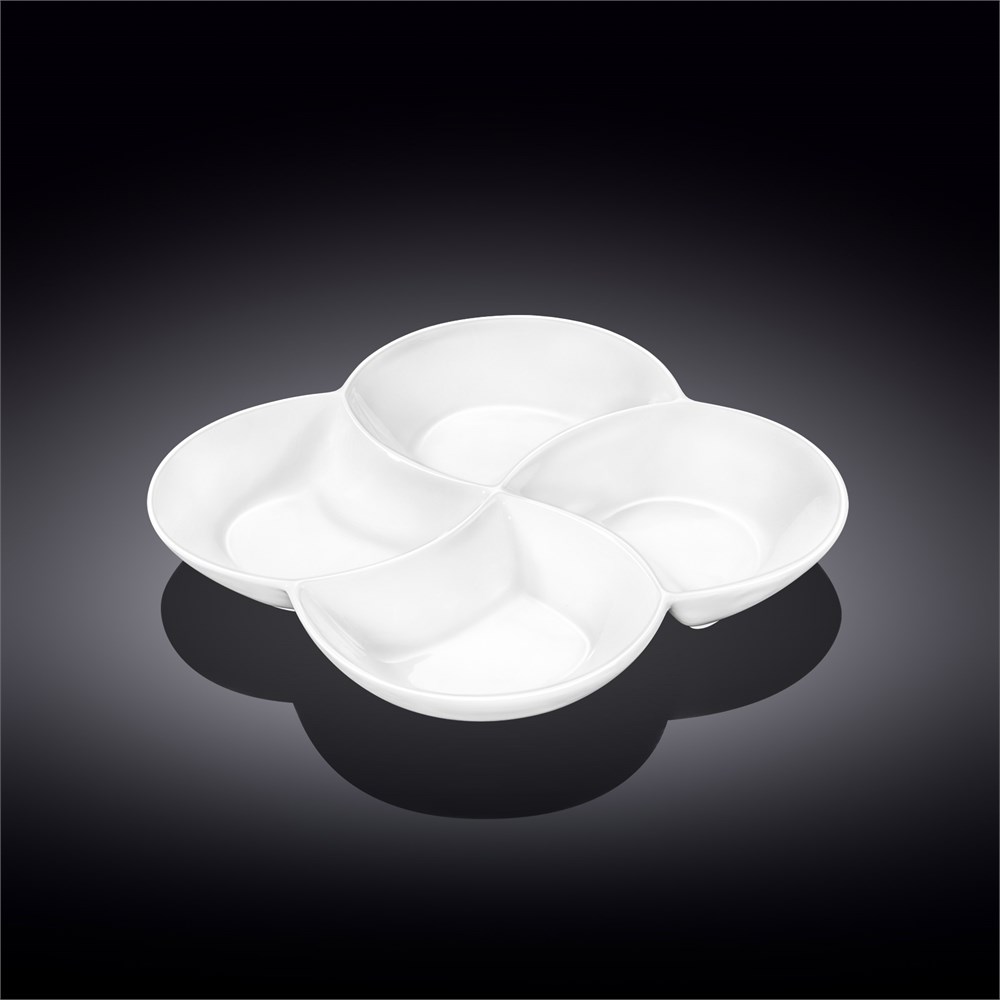 Цветная упаковка: S[Нет]; Использование в посудомоечной машине: S[Да]; Размер: S[22 x 22]; Тип: S[Менажницы]; Цвет: S[Белый]; Использование в СВЧ: S[Да]; Форма: S[Нестандартная]; Бренд: E[Wilmax]