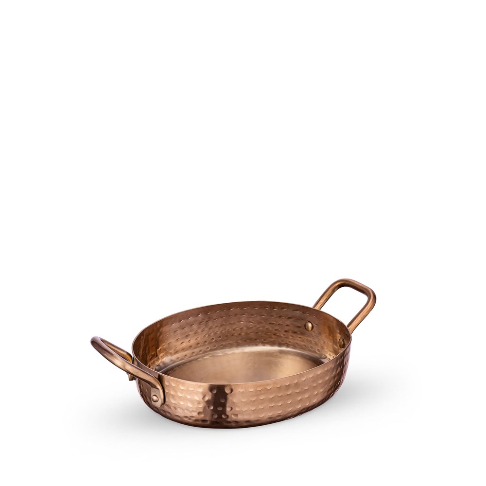 Коллекция: E[Hammered]; Цветная упаковка: S[Нет]; Использование в посудомоечной машине: S[Да]; Размер: S[14 x 11.5 x 3.5]; Тип: S[Мини-сковородки]; Цвет: S[Бронзовый матовый]; Использование в СВЧ: S[Нет]; Форма: S[Овальная]; Бренд: E[Wilmax]