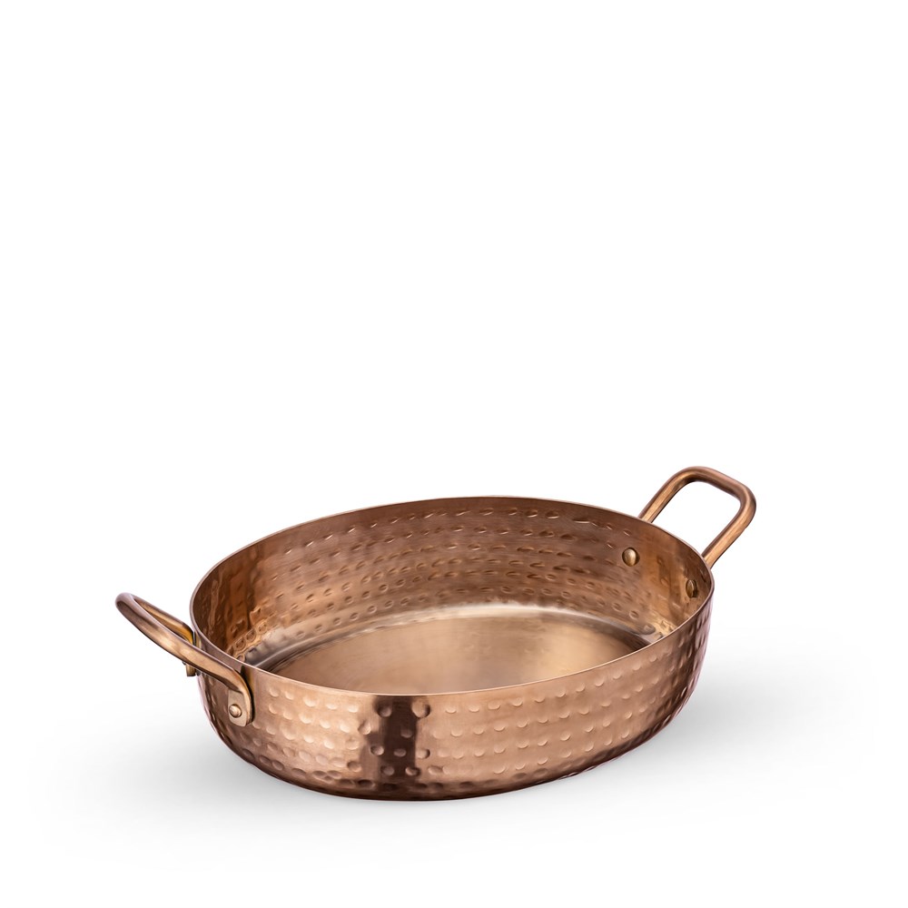 Коллекция: E[Hammered]; Цветная упаковка: S[Нет]; Использование в посудомоечной машине: S[Да]; Размер: S[18 x 14 x 4.5]; Тип: S[Мини-сковородки]; Цвет: S[Бронзовый матовый]; Использование в СВЧ: S[Нет]; Форма: S[Овальная]; Бренд: E[Wilmax]