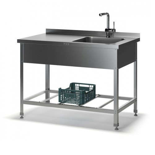 Моечная ванна со столом МС-Н 2 с бортом (1500х600х870), мойка цельн. накладная 400х500х140, отверстие под смеситель сбоку