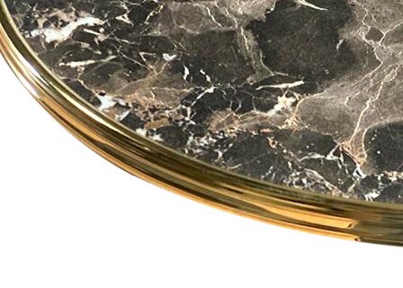 Стандартные размеры : D 700, D 800 мм\; Толщина : 25 мм\; Материал : основа – плита ДСП 18 мм, покрытая уникальным составом\; Материал кромки : металл\; Цвет верзалита/кромки : мраморный караджабей /латунь\; Производство : Турция\; Вес : 6 кг (D 700 мм), 8 кг (D 800 мм)\;