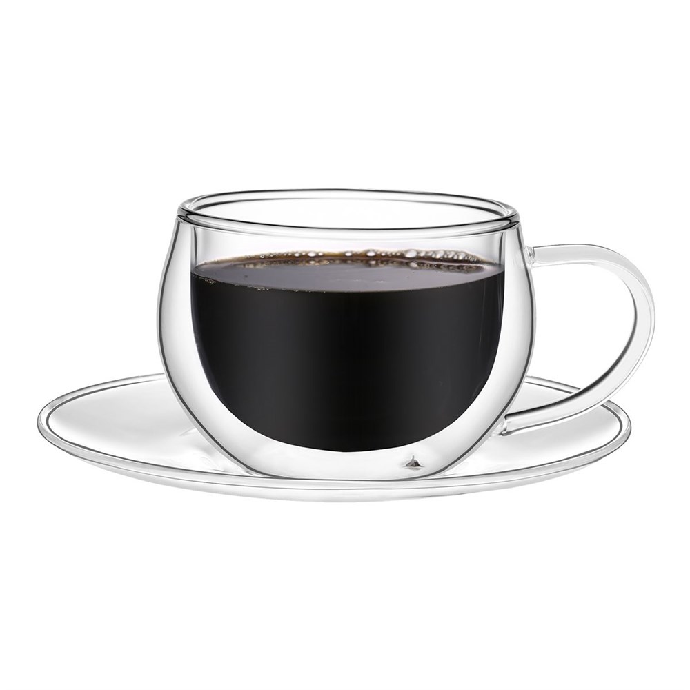 Набор чашка с блюдцем 2шт*140 мл, термостойкое стекло, двойные стенки, P.L.