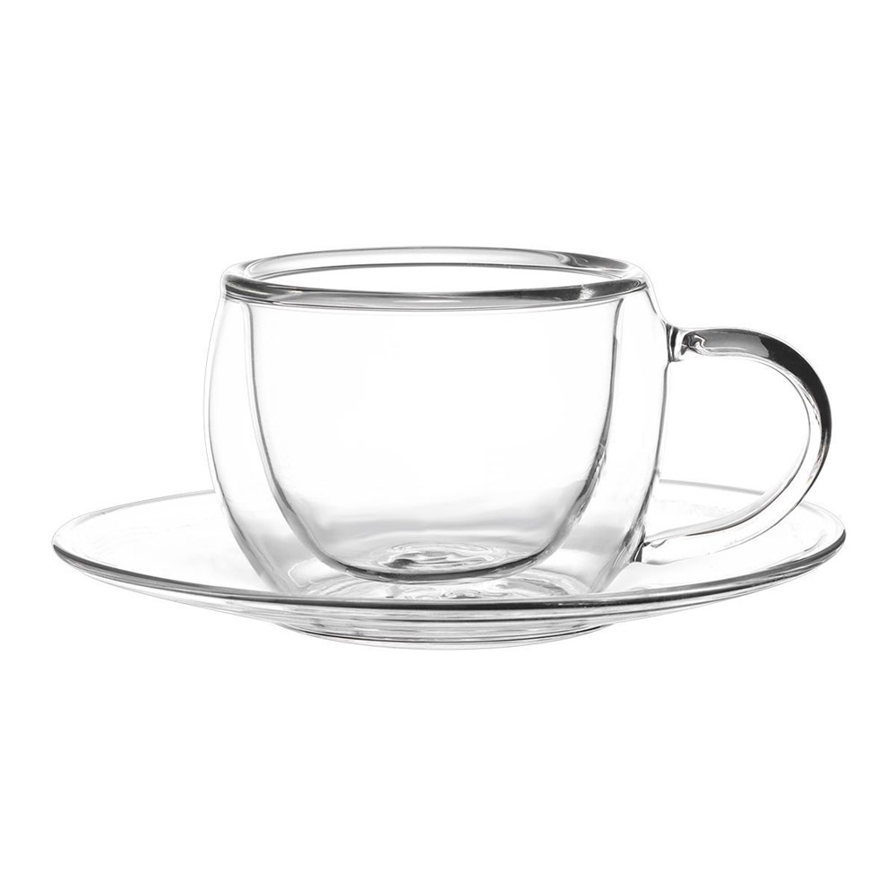 Набор чашка с блюдцем 2шт*80 мл, термостойкое стекло, двойные стенки, P.L.