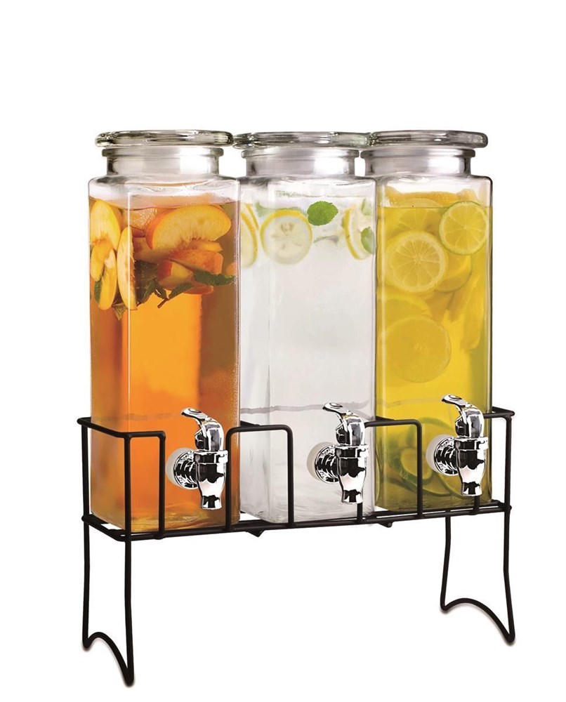 Набор диспенсеров д/напитков(лимонадник),стеклянные с краном на мет.подставке,3*2,5 литра, P.L.