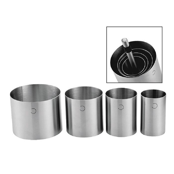 Набор кондитерских колец, 4 шт + пресс (100*80 мм/75*80 мм/62*80 мм/50*80 мм), P.L. Proff Cuisine