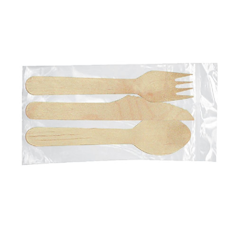 Набор столовых приборов 15 см в индивидуальной упаковке: нож, вилка, ложка; дерево