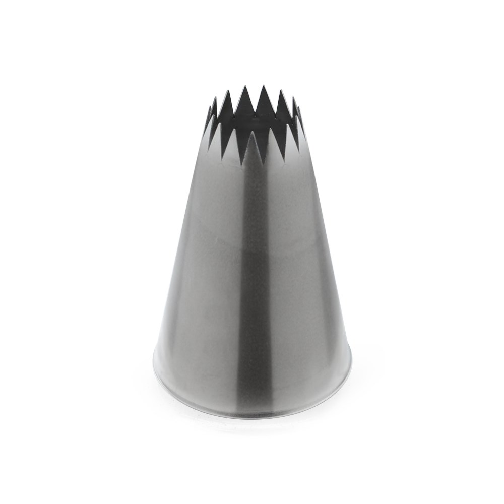 Тип: насадка\; Вид: трубочка зубчатая\; Диаметр отверстия, мм: 13\; Диаметр основания, мм: 30\; Высота, мм: 45\; Материал: нерж. сталь\; Особенности: для помадки, мелкие зубчики\;