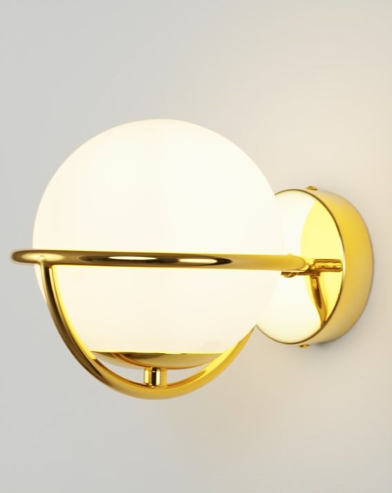 Габарит изделия : 180x180х235 мм\; Выключатель/Пульт : Нет\; Лампы в комплекте : Нет\; Материал арматуры : металл\; Материал общий : металл, стекло\; Материал плафонов : стекло\; Наличие диммера : нет\; Наличие пульта д/у : нет\; Направление плафонов : в стороны\; Напряжение : 220-240 В\; Общая мощность светильника : 5 Вт\; Способ крепления : На планку\; Степень защиты IP : 20\; Тип лампы : Накаливания или LED\; Тип цоколя : E14\; Цвет : окрашенное золото, белый\; Цвет арматуры : окрашенное золото\; Цвет декора : окрашенное золото\; Цвет плафонов : белый\; Электрика, тип цоколя + кол-во ламп + мощность : 1*E14*5 Вт\;