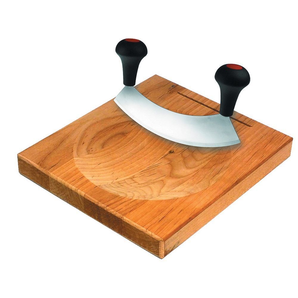 Нож для резки зелени с бамбуковой доской 15 см, два лезвия, две ручки, P.L. Proff Cuisine