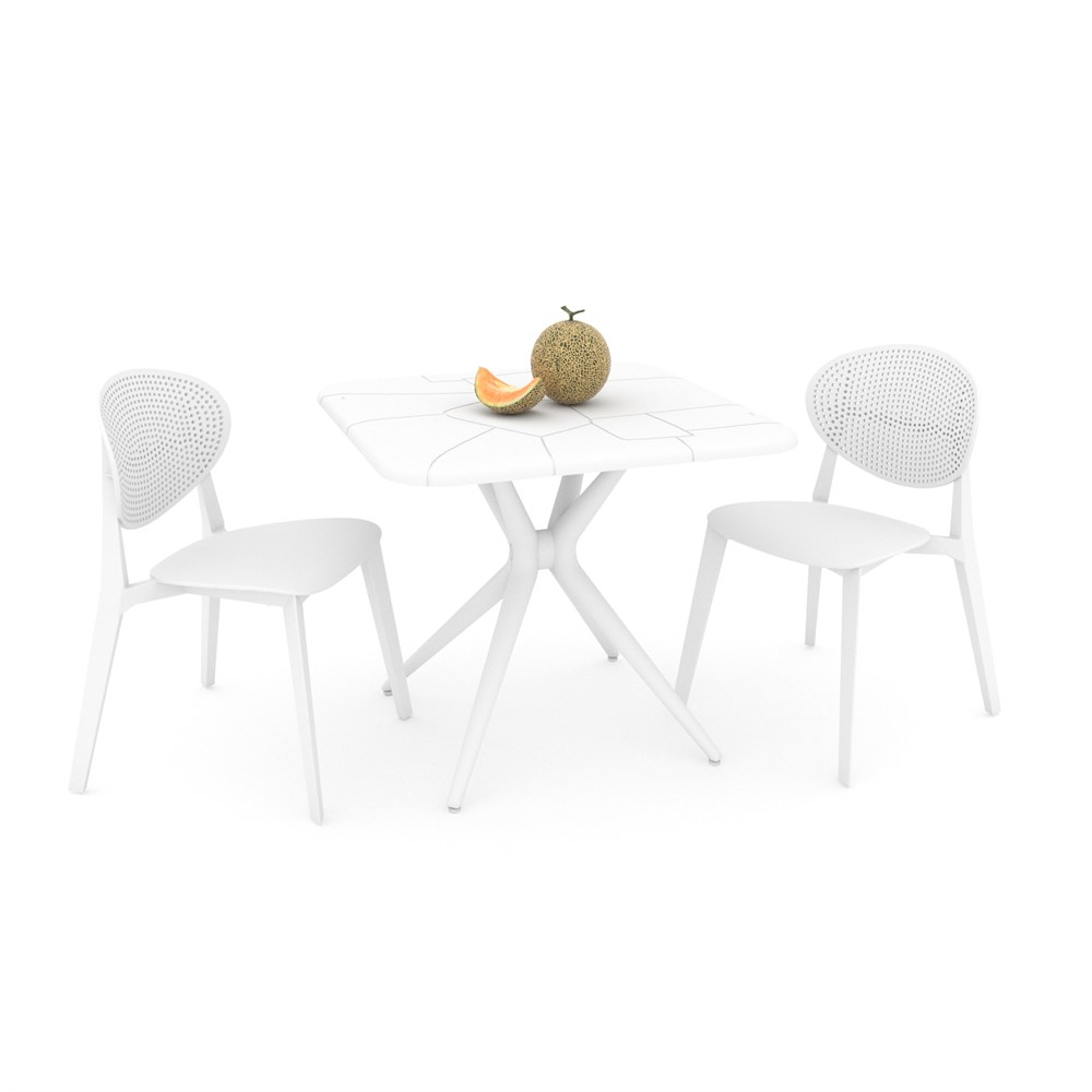 Габариты стола (ШхГхВ) : 835х835х760 мм\; Габариты стула (ШхГхВ) : 530х560х830 мм\; Высота от пола до сиденья стула : 470 мм\; Материал стола : армированный пластик\; Материал стула : армированный пластик\;