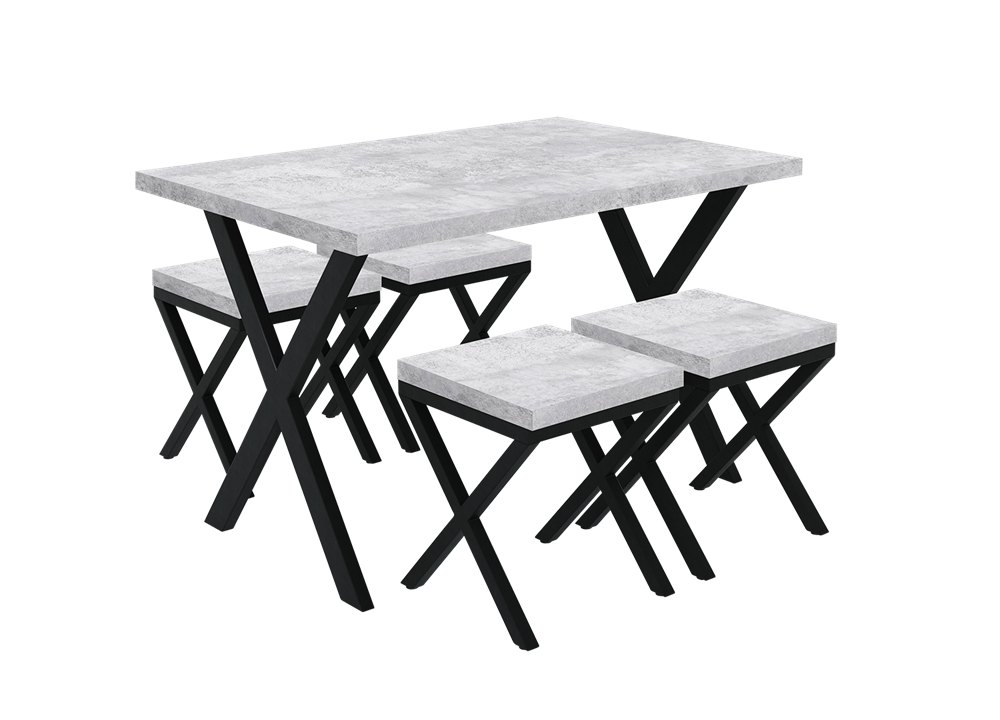 Габариты стола (ШхГхВ) : 1200х800х750 мм \; Габариты табурета (4 шт) (ШхГхВ) : 380х380х450 мм \; Материал каркаса : металл. профильная труба \; Материал столешницы, сиденья : влагостойкое ДСП, облицованное декоративным покрытием с высокой степенью износостойкости (в состав входят частицы оксида алюминия) \; Цвет каркаса : черный RAL 9005 (Муар) \; Цвет столешницы, сиденья : 12 цветов – см. фото\;