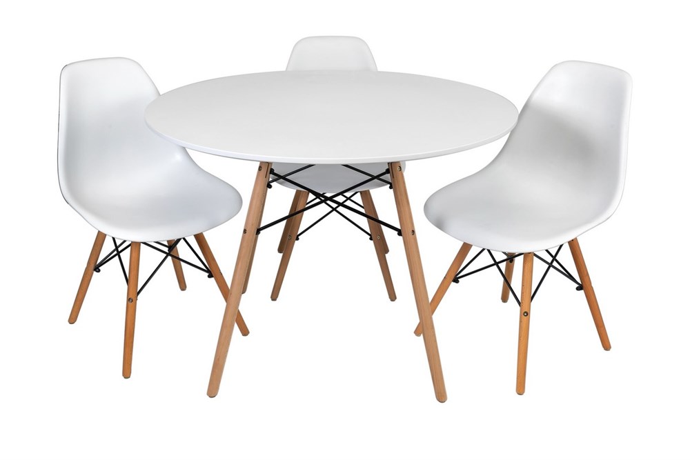 Габариты стола (ДхВ) : 1000х720 мм\; Габариты стула (ШхГхВ) : 460х540х820 мм\; Высота от пола до сиденья стула : 430 мм\; Материал столешницы : мдф белый\; Материал сиденья стула : пластик\; Материал ножек стола и стула : массив бука, сталь\; Цвет сиденья стула : коричневый, зеленый, светло-зеленый, бежево-серый, темно-серый, оранжевый, голубой, бирюзовый, желтый, красный, розовый\; Нагрузка стула : 120 кг\;