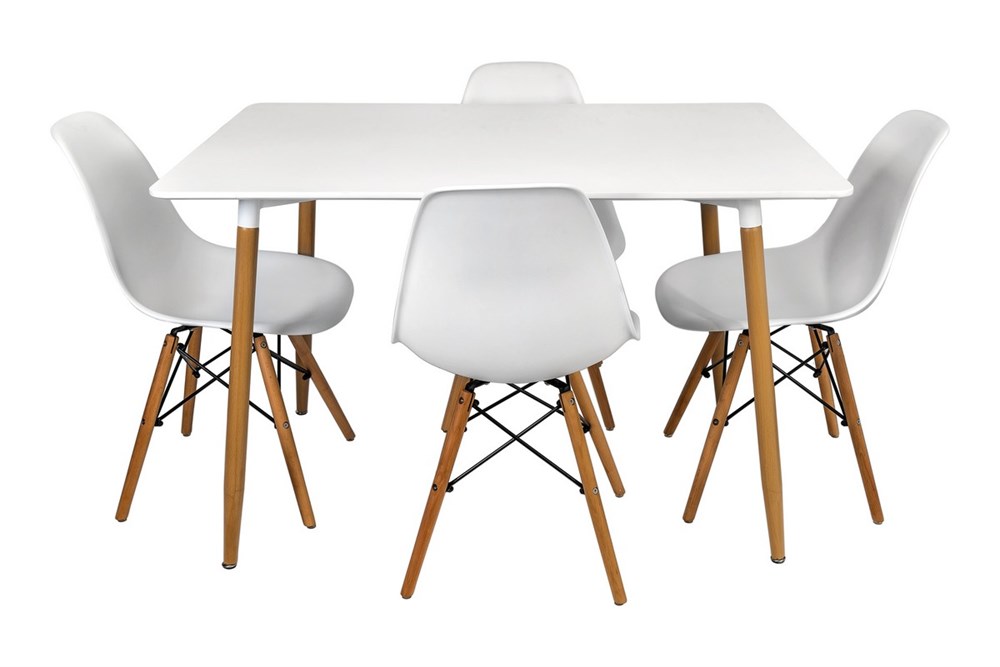 Габариты стола (ШхГхВ) : 1200х800х730 мм\; Габариты стула (ШхГхВ) : 460х540х820 мм\; Высота от пола до сиденья стула : 430 мм\; Материал столешницы : мдф белый\; Материал сиденья стула : пластик\; Материал ножек стола и стула : массив бука, сталь\; Цвет сиденья стула : коричневый, зеленый, светло-зеленый, бежево-серый, темно-серый, оранжевый, голубой, бирюзовый, желтый, красный, розовый\; Нагрузка стула : 120 кг\;