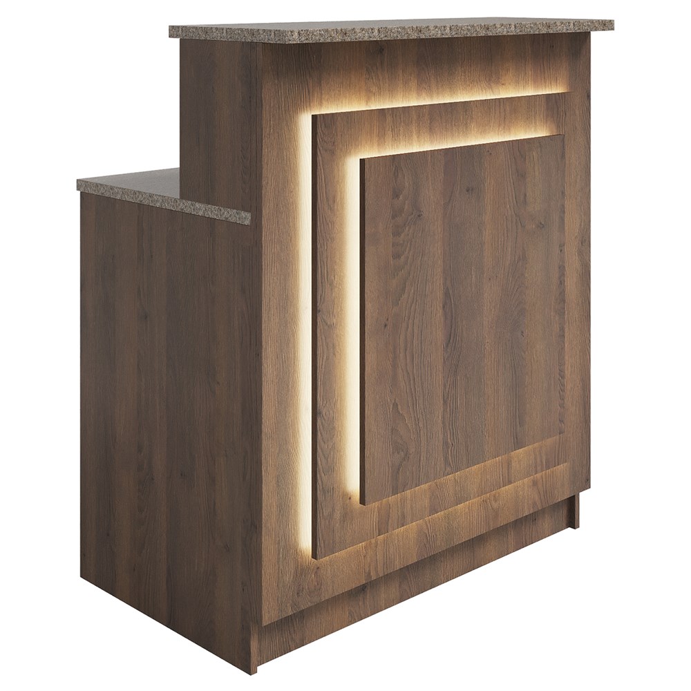 Габариты (ШхГхВ) : 1004х686х1190 мм \; Материал корпуса : ЛДСП 16 мм., кромка ПВХ 2 и 0,4 мм\; Материал фасада : ЛДСП 16 мм., кромка ПВХ 0,4 мм \; Столешница рабочая и гостевая : ЛДСП 25 мм., кромка ПВХ 2 мм \; Подсветка : LED (под столешницей - дополнительная опция, в фасаде входит в стоимость)\;