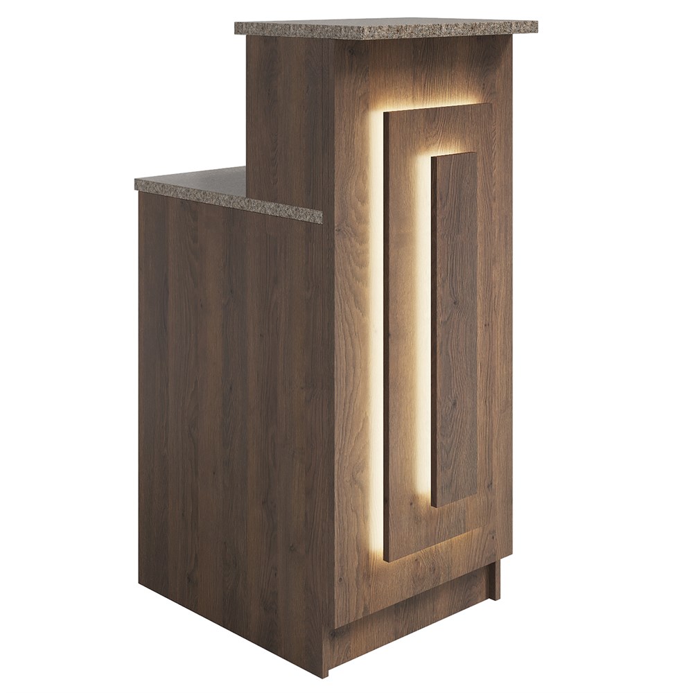 Габариты (ШхГхВ) : 504х686х1190 мм \; Материал корпуса : ЛДСП 16 мм., кромка ПВХ 2 и 0,4 мм \; Материал фасада : ЛДСП 16 мм., кромка ПВХ 0,4 мм \; Столешница рабочая и гостевая : ЛДСП 25 мм., кромка ПВХ 2 мм \; Подсветка : LED (под столешницей - дополнительная опция, в фасаде входит в стоимость)\;