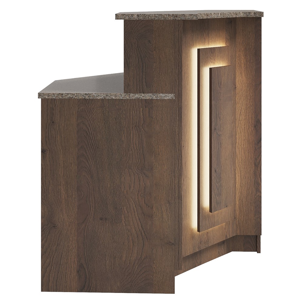 Габариты (ШхГхВ) : 1000х1000х1190 мм \; Материал корпуса : ЛДСП 16 мм., кромка ПВХ 2 и 0,4 мм \; Материал фасада : ЛДСП 16 мм., кромка ПВХ 0,4 мм \; Столешница рабочая и гостевая : ЛДСП 25 мм., кромка ПВХ 2 мм \; Подсветка : LED (под столешницей - дополнительная опция, в фасаде входит в стоимость)\;