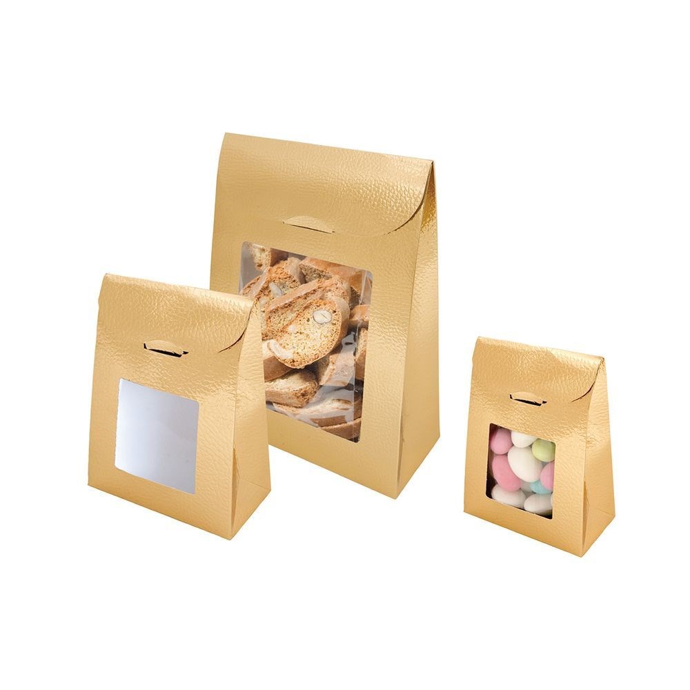 Пакетик с окном для кондитерских изделий, 9+4,5*13 см, золотой, картон, 1 шт, Garcia de Pou