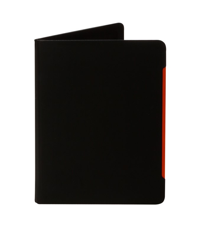 Размер : 230х315 мм\; Материал : гладкий матовый черный кожзам, на 4-х болтах, с оранжевой вставкой, без файлов и надписей\;