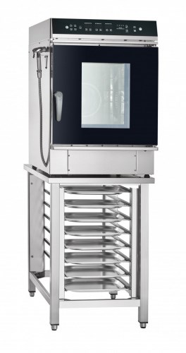 Питание: 220 В\; Тип управления: электронное\; Мощность, кВт: 5,2\; Тип парообразования: бойлер\; Противень: GN 2/3\; Количество уровней: 6\; Растояние между уровнями, мм: 60\; Мойка: автоматическая\; Душ ручной: Да\; Термощуп: Да\; Установка: на подставке\; T max, °C: 270\; T min, °С: 30\; Габаритные размеры, мм: 550х710х835\;