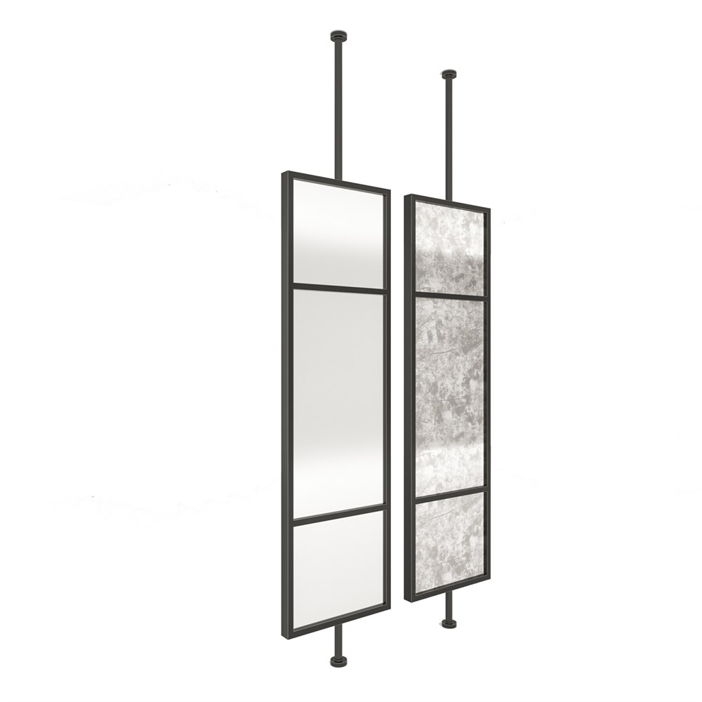 Габариты (ШхГхВ) : 600х60х2300-3000 мм\; ЛДСП : 16 мм, с кромкой ПВХ 0,4 мм\; Сварной профиль : 60х30 мм, D 40 мм.\; Металлический лист : 3 мм\; Порошковая покраска : цвет черный\; Наполнение : зеркало серебро или состаренное зеркало\;