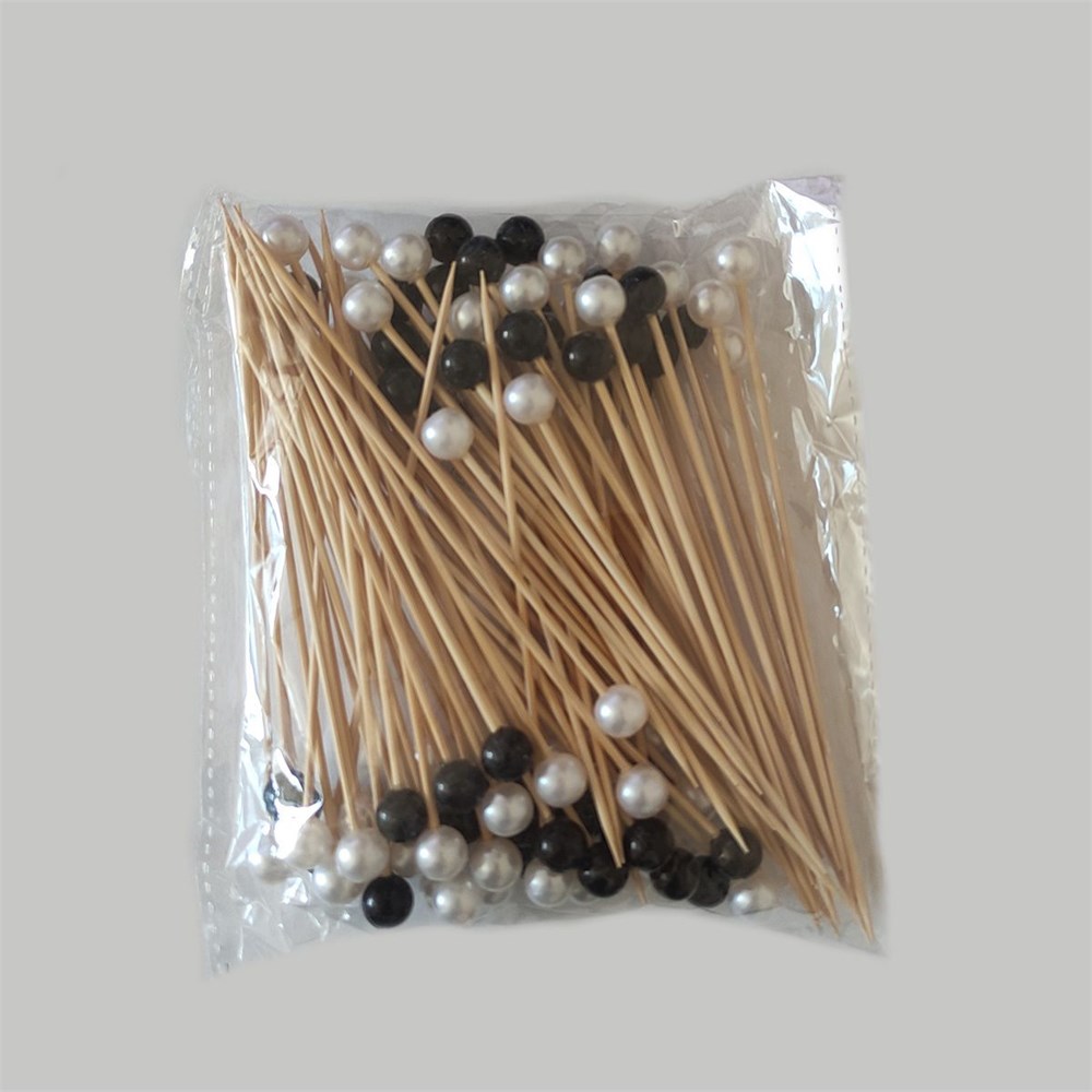 Пика "Черно-Белые шарики" бамбук 100 мм, 100 шт
