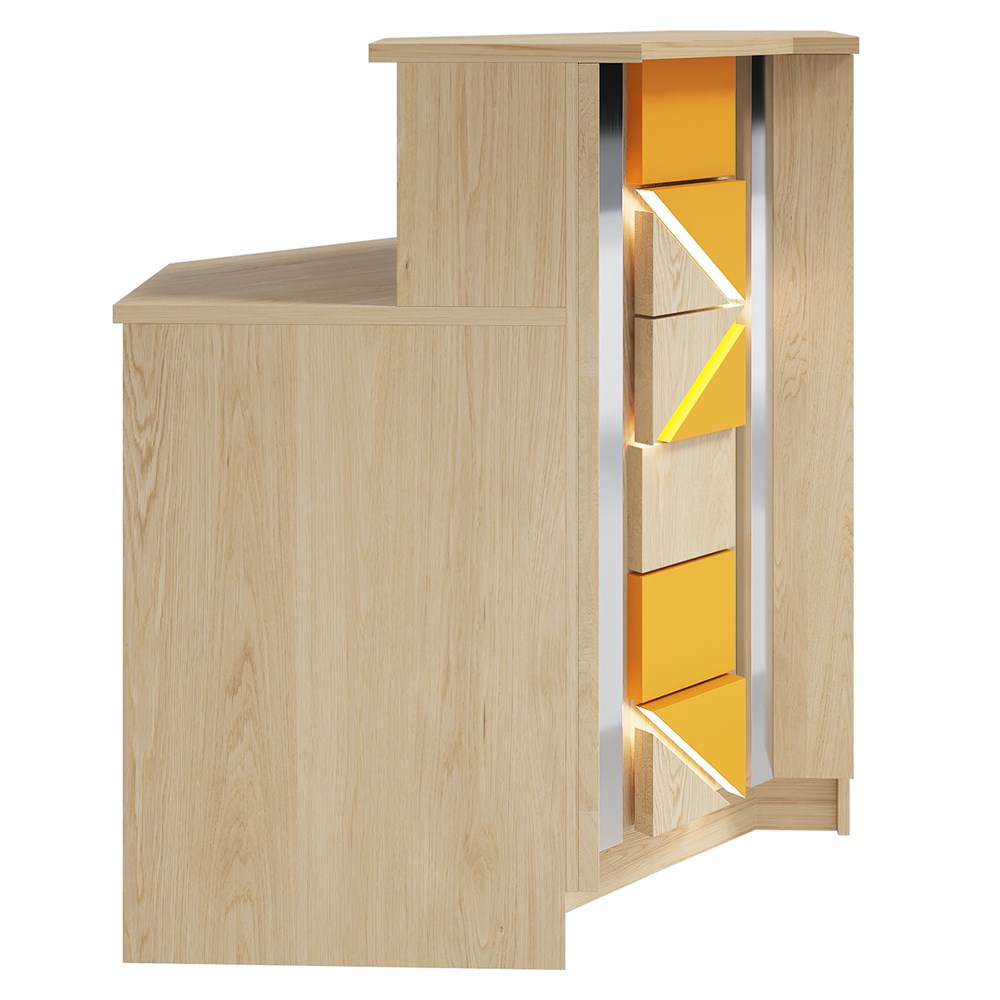 Габариты (ШхГхВ) : 1000х1000х1190 мм \; Материал корпуса : ЛДСП 16 мм., кромка ПВХ 2 и 0,4 мм\; Материал фасада : ЛДСП 16 и 25 мм., кромка ПВХ 0,4 мм \; Столешница рабочая и гостевая : ЛДСП 25 мм., кромка ПВХ 2 мм \; Подсветка : LED (под столешницей - дополнительная опция, в фасаде входит в стоимость)\;