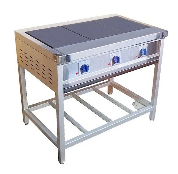 Питание: 380\; Мощность, кВт: 6,6\; Установка: на подставке\; Количество конфорок: 3\; Конфорка: чугун\; T max конфорки, °C: 450\; Габаритные размеры, мм: 990х665х850\;
