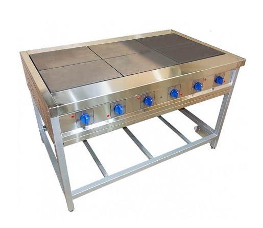 Питание: 380\; Мощность, кВт: 18\; Установка: на подставке\; Количество конфорок: 6\; Конфорка: чугун\; T max конфорки, °C: 480\; Габаритные размеры, мм: 1355х840х850\;