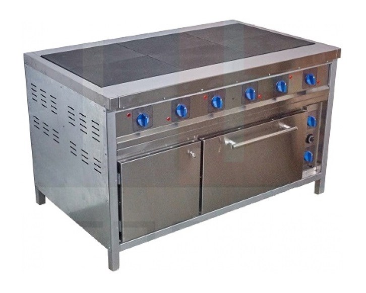 Питание: 380\; Мощность, кВт: 22,8\; Установка: напольная\; Количество конфорок: 6\; Конфорка: чугун\; Духовой шкаф: Да\; T max конфорки, °C: 480\; Габаритные размеры, мм: 1355*840*850\; Диапазон температуры, °С: 30-270\;