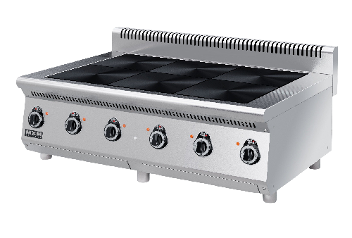 Питание: 380\; Мощность, кВт: 16,5\; Установка: настольная\; Количество конфорок: 6\; Конфорка: чугун\; T max конфорки, °C: 400\; Габаритные размеры, мм: 1110x700x450\;