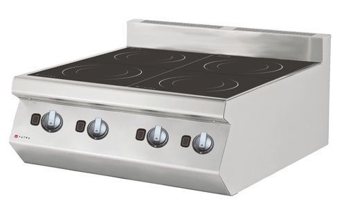 Питание, В: 380\; Мощность, кВт: 14\; Установка: настольная\; Количество конфорок/зон нагрева: 4\; Конфорка: плоская\; Габаритные размеры, мм: 800х760х490\;