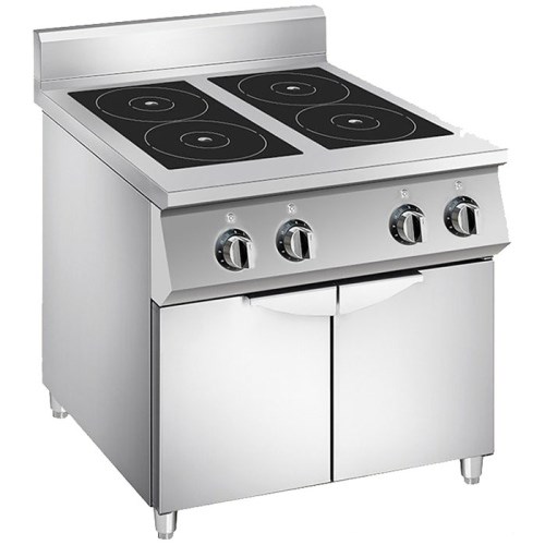 Питание, В: 380\; Мощность, кВт: 17\; Установка: напольная\; Количество конфорок/зон нагрева: 4\; Конфорка: плоская\; Габаритные размеры, мм: 800х700х980\;