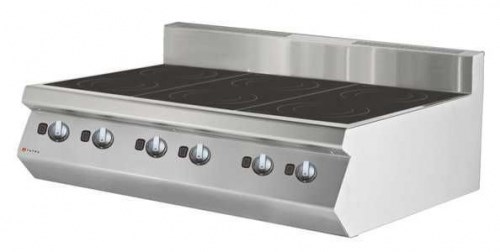Питание, В: 380\; Мощность, кВт: 21\; Установка: настольная\; Количество конфорок/зон нагрева: 6\; Конфорка: плоская\; Габаритные размеры, мм: 1200х760х490\;