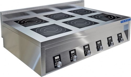 Питание, В: 380\; Мощность, кВт: 21\; Установка: настольная\; Количество конфорок/зон нагрева: 6\; Конфорка: плоская\;