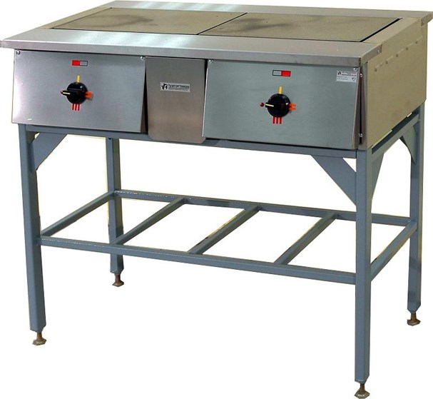 Питание: 380\; Мощность, кВт: 5,5\; Установка: на подставке\; Количество конфорок: 2\; Конфорка: чугун\; T max конфорки, °C: 430\; T min конфорки, °С: 30\; Габаритные размеры, мм: 950х540х850\;