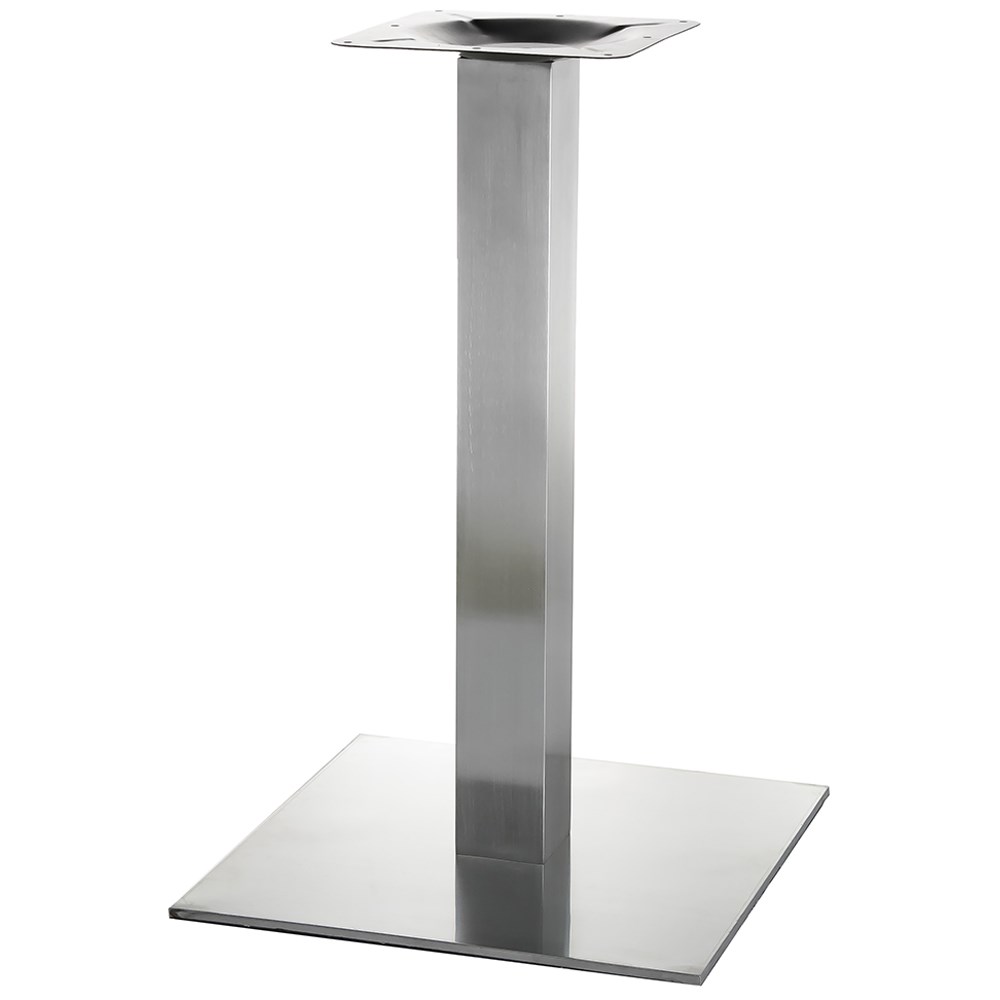 Габариты (ШхГ) : 450х450 мм\; Высота : 720 мм\; Центральная опора : 80х80 мм\; Верхняя площадка : 250х250 мм\; Материал : полированная нержавеющая сталь (матовая)\; Вес : 17 кг\; Рекомендуемый размер столешницы : D 700, 700х700 мм\;