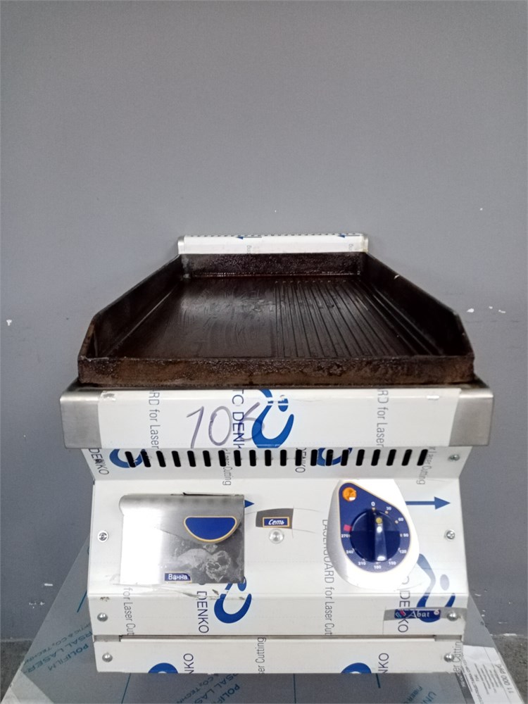 Состояние товара : новый\; Вес (без упаковки) : 52 кг \; Габаритные размеры : 402х750х470 мм\; Материал поверхности : чугун \; Структура жарочной поверхности : комбинированная \; Температурный режим : от 30 до 270 °С \; Подключение : 380 В \; Линия : 700 \; Количество зон нагрева : 1 \; Тип : настольная \; Причина уценки : без упаковки\; Страна производства : Россия\;